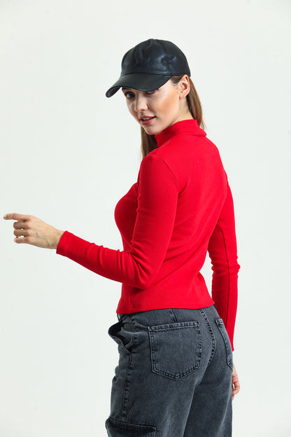 Turtleneck Ribbed Camisole Long Sleeve Knitted Blouse