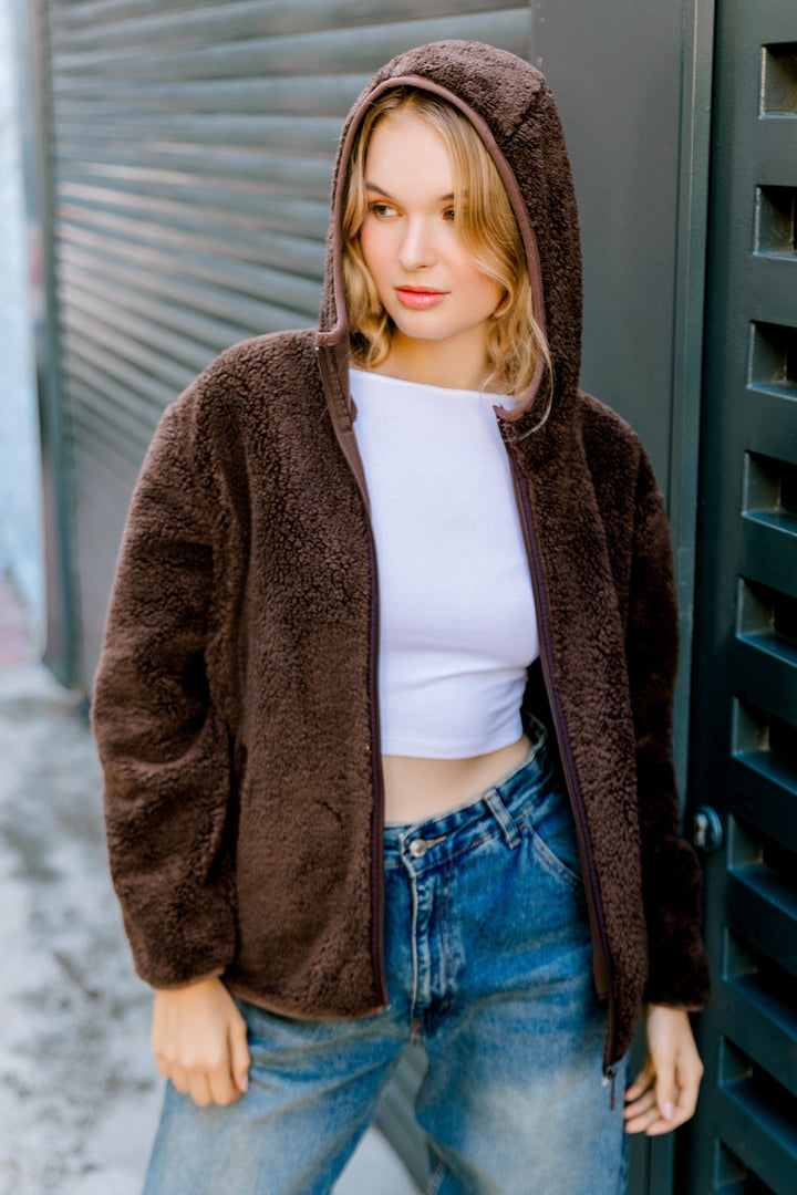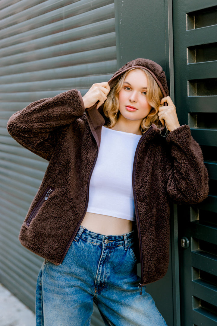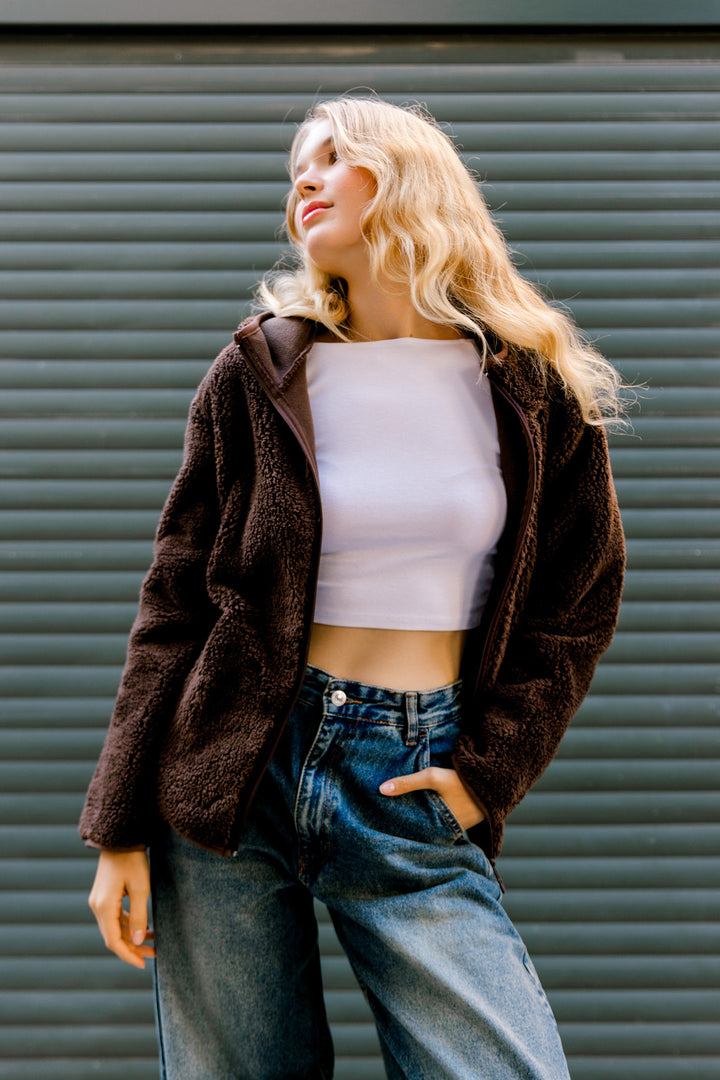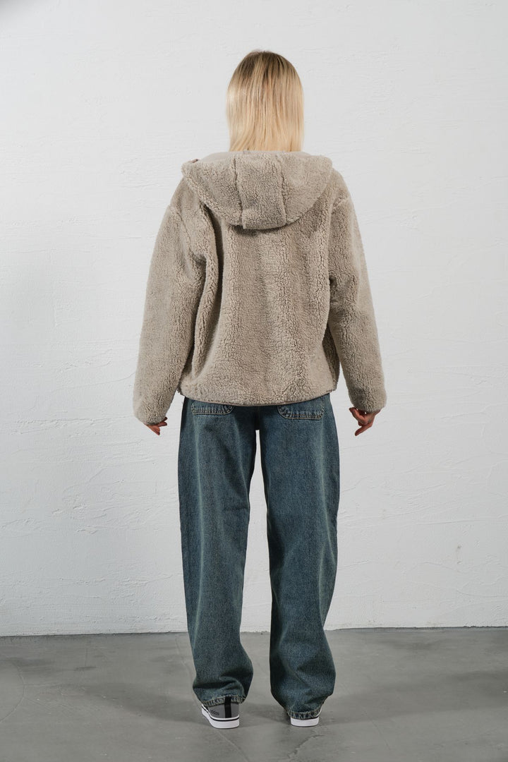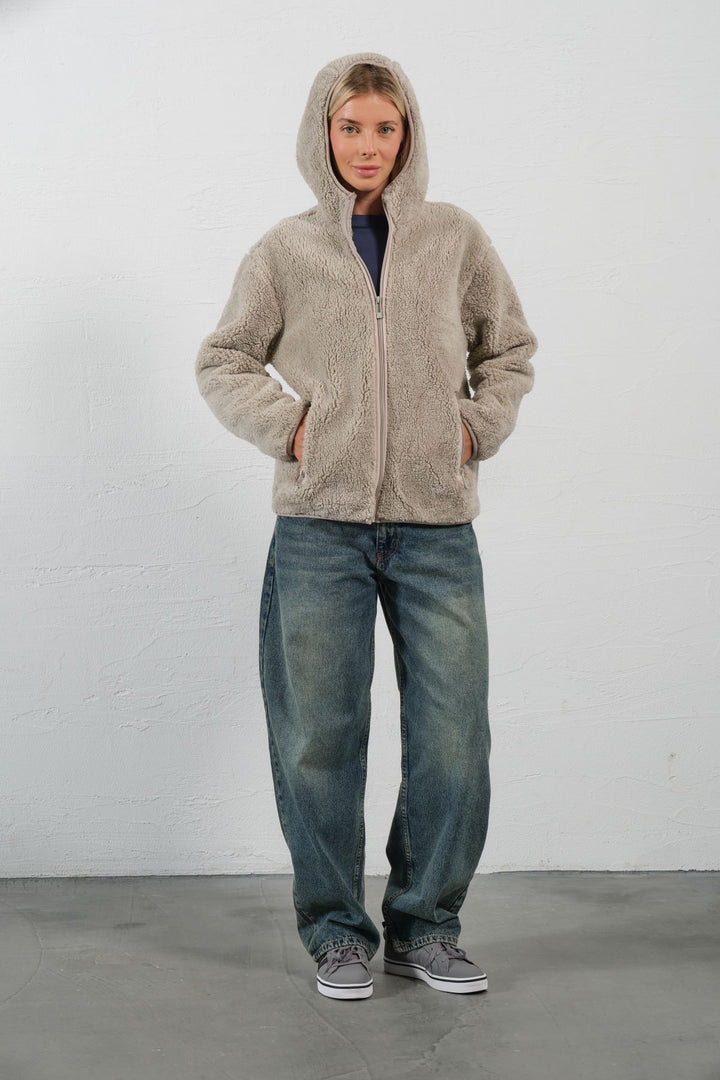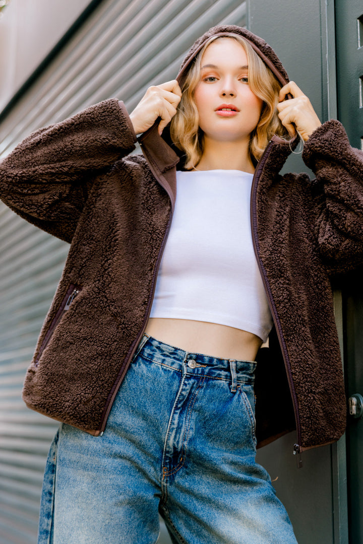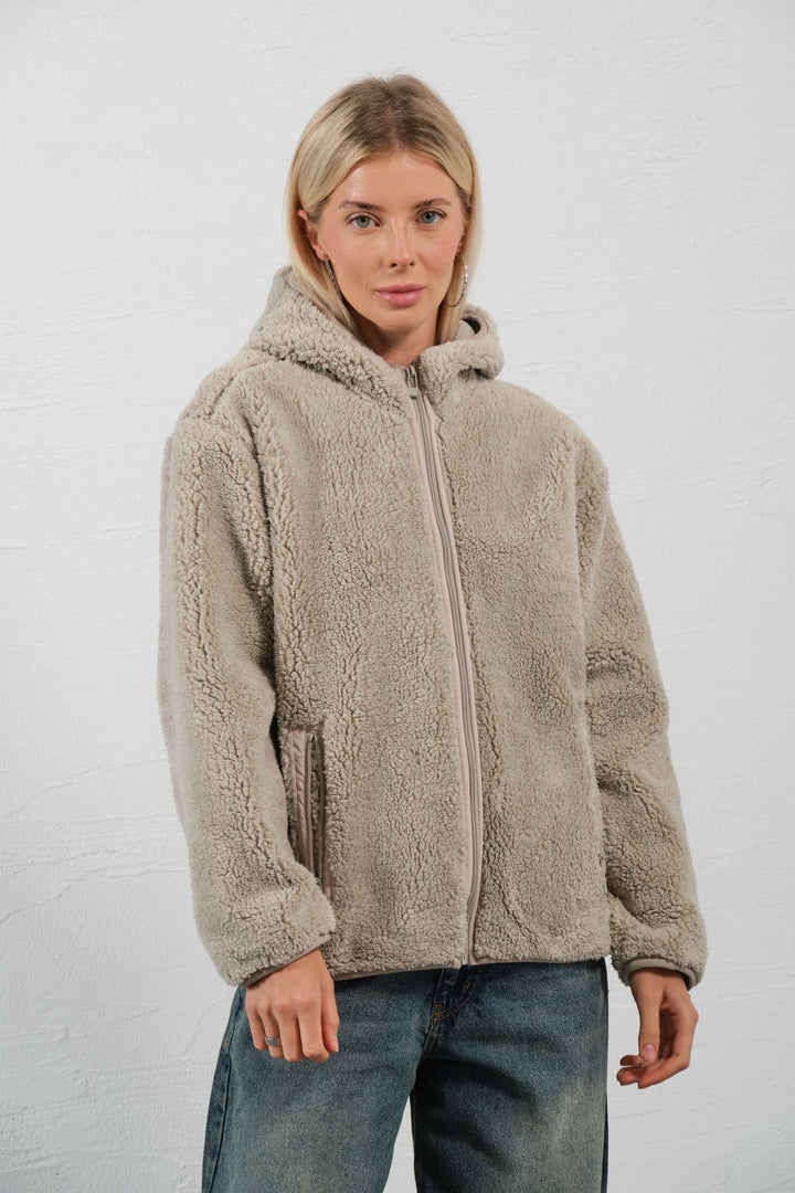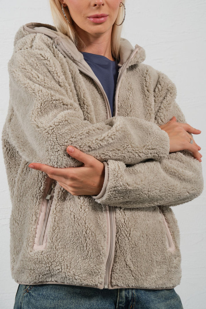Dışı Suni Kürk, İçi Polar Fermuar Cepli Kapüşonlu Fermuarlı Spor Kadın Mont @Zaragoza