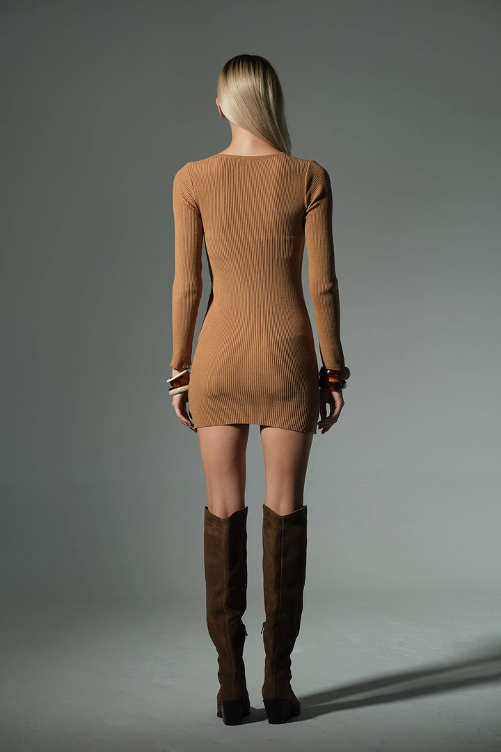 V yaka fitilli triko bodyycon mini elbise @Lizbon Domoda